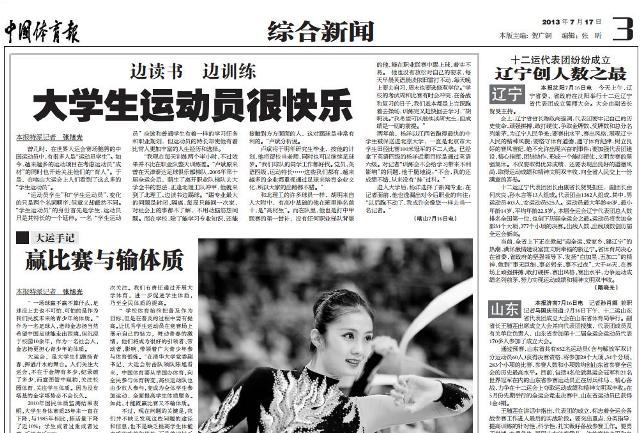 【中国体育报】边读书 边训练——大学生运动员很快乐