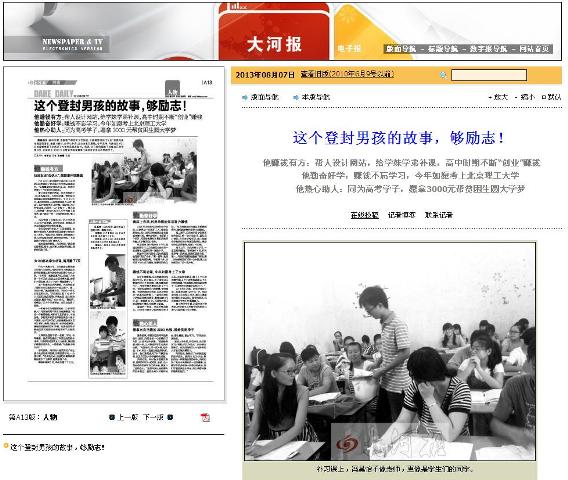 【大河报】北理工2013级本科准新生的励志故事之“创业有方 勤奋好学 热心助人”