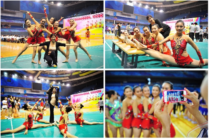“台上一分钟,台下十年功。”华丽转身的背后是教练和队员们汗水的浇注。队员们的每一套动作需要长时间地去抓细节,为了做到完美,要一点一点地对着镜子去反复练习。在不耽误学业的情况下,队员们要保证3-6个小时的排练时间,减肥在这些队员中永远不是问题,因为在高强度的排练下体重会自然下降。训练初期,由于时间比较紧张,排练的场地无法保障,为了保证训练时间,队员们便在篮球场等地练劈叉、练大跳,硬邦邦的塑胶地一次次地考验着队员们的意志,浑身的淤青也没有阻挡他们埋头训练的决心。
