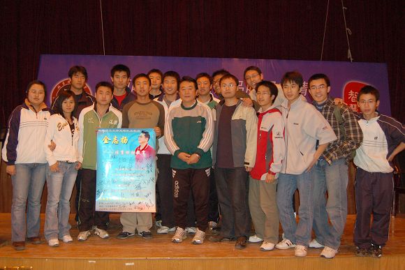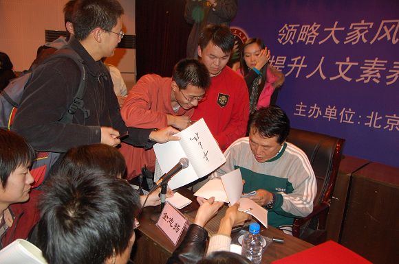 报告会之后,听众和师生球迷在争先恐后地请金志扬教授签名留念。