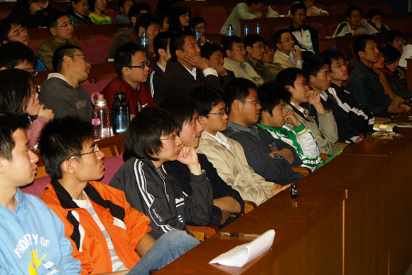 董路先生到场后,风趣幽默的开场白立刻调动了大家的兴趣。当他说到“我习惯在别人怀疑的目光中证明我自己的想法!”时,大家感到了一种昂扬的精神,不禁大声鼓起掌来。
