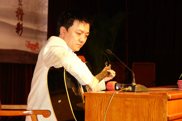 在董先生演讲结束之前,他特地为我们弹奏了一曲吉他,并亲自演唱了自创歌曲《在你向我微笑的一瞬间》,嗓音很有质感,感情很真挚!