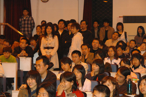 接下来的互动环节十分精彩。同学们争相发言,提出了很多针对性强、巧妙的问题。