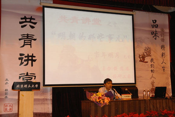 4月10日晚7:00,共青讲堂第十期讲座在七号楼报告厅举行。著名白话史家“当年明月”先生,应邀为北理学子带来了一场题为“明朝那些事儿”的讲座。同学们早就对这个名字耳熟能详,早早就来到了会场。