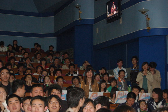 本次讲座受到了同学的广泛关注,讲座开始前4个小时主会场已经没有了座位,讲座开始后,同步直播的中教317教室也没有了座位,飞翔论坛的直播帖点击率突破了5000次,京工世纪视频直播的在线人数接近1000人。