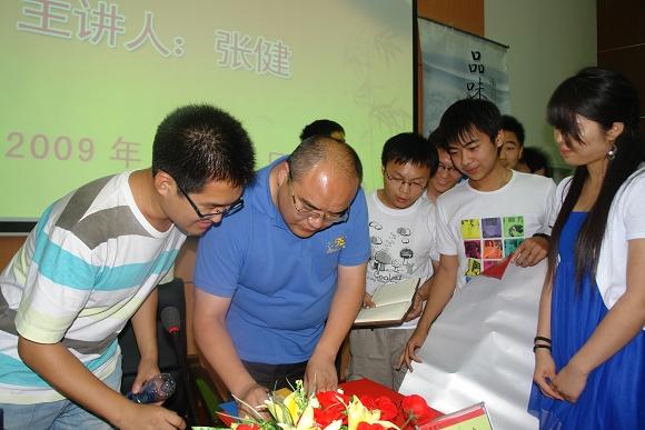 一个半小时的讲座节奏紧凑、气氛轻松,张健老师诙谐的话语不时引发同学们的笑声与掌声。最后,张健老师细致地解答了同学们的各种问题,并一一满足索要签名的同学们的要求,讲座在愉快的气氛中结束。
