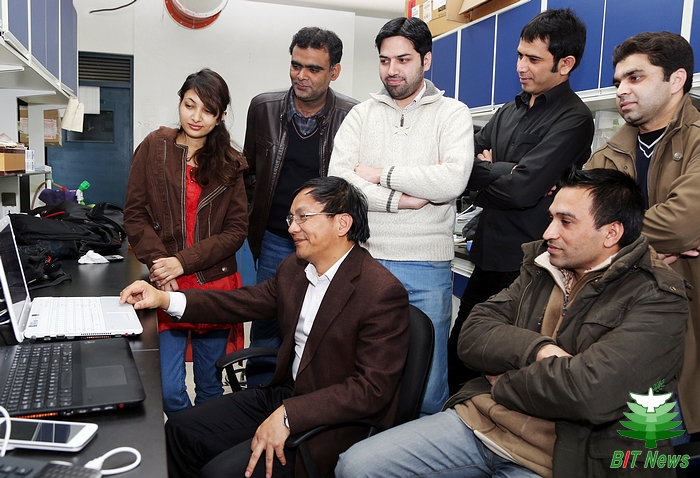 谦虚、低调是曹老师给我们的第一印象。成果等身,但鲜见于报道;桃李芬芳,却平淡代之。至今从曹老师那里毕业的外国留学生已有三届,现在仍在实验室里活跃着的外国留学生,多达七人,包括了四届博士生,他们都来自巴基斯坦。其实,每年申请跟曹老师读博士的留学生都有数十位,但由于名额限制,能获得机会的都是极为优秀的学生。说起曹老师和留学生结下的不解之缘,还要从曹老师带的第一个留学生开始。