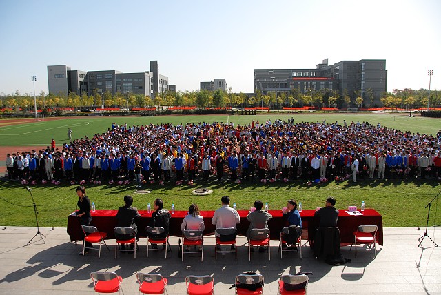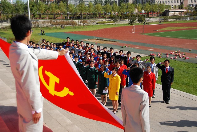 9月21日上午9点,国庆群众游行二十二总队在德赢AC米兰官网良乡校区隆重举行了入党宣誓仪式。在近两个月的训练过程中,二十二总队中涌现出一批政治性强、高举爱国主义旗帜的同学,他们以祖国荣誉高于一切的信念投入训练,在总队中起到了表率作用。经二十二总队党支部讨论,共有十六名在国庆活动训练和组织过程涌现出来且学习成绩优秀的入党积极分子光荣加入中国共产党,他们与前期发展的一百余名预备党员在党旗下进行了庄严的宣誓。