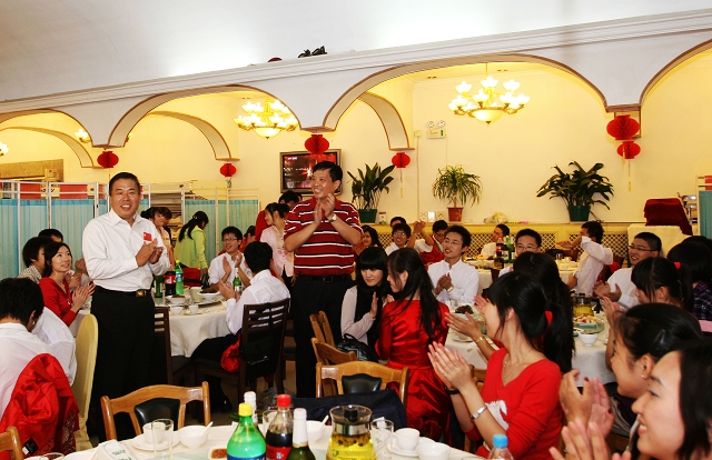 在随后举行的简短而热烈的“庆功宴”上,李和章副校长动情的说:“祝贺你们顺利的完成了这项光荣的任务,热烈欢迎你们胜利凯旋,我非常羡慕大家,希望大家能够牢记,能在国旗下为祖国六十周岁生日纵情高歌是一种莫大的荣誉,我们一定要珍惜这样的荣誉,在今后的学习、工作和生活中,为祖国做出新的更大的贡献!”