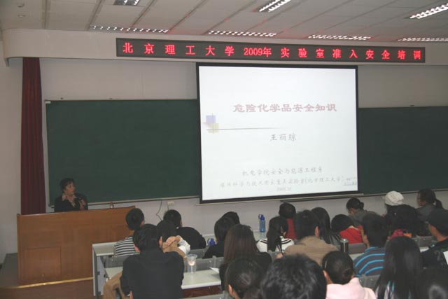 10月24日上午,实验室与设备管理处在研究生教学楼201室举办了2009级硕士研究生实验室准入安全培训。参加培训的学生包括我校机电学院、材料学院、化工与环境学院、生命学院和理学院等五个学院的从事危险化学品相关实验的2009级硕士研究生共计380人。培训由实验室与设备管理处处长庞思勤主持。