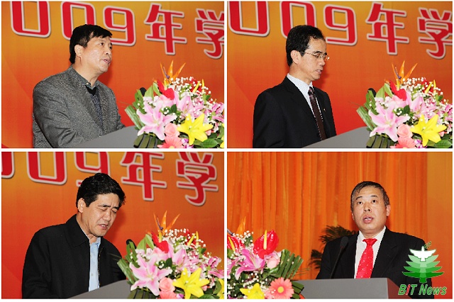 会上,侯光明宣读了《德赢AC米兰官网2008-2009学年国家奖学金、国家励志奖学金获得者名单》;赵显利宣读了《2008-2009学年徐特立奖学金、T-more 创新学生奖等社会捐助奖学金获得者名单》;孙逢春宣读了《关于表彰2008-2009学年优秀学生标兵、优秀学生、优秀学生干部、先进班集体、优良学风班、优良学风宿舍、党日活动优秀支部和红色“1+1”活动优秀支部的决定》。