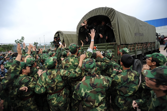 随后,珠海学院举行宴会,隆重欢送全体承训官兵,军训学生与承训官兵依依惜别。