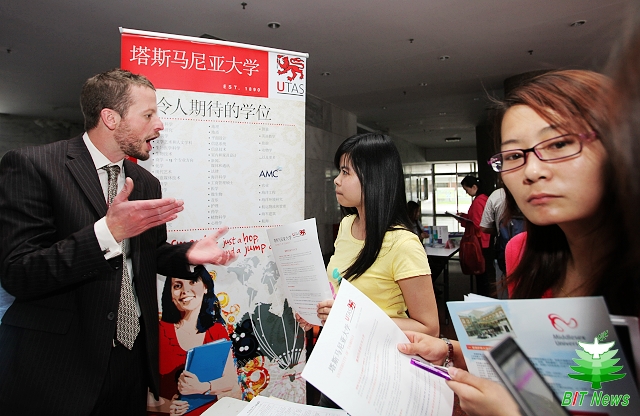 会后,参会的国内外院校还在我校中心教学楼一层大厅举行了与学生的交流会,就留学中的一些问题给予了现场解答。