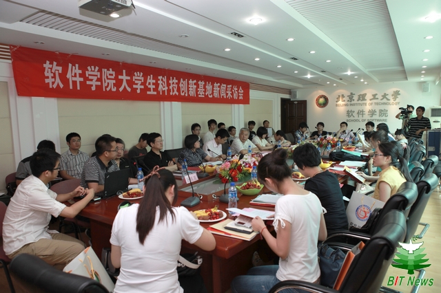 媒体记者听了介绍后表示对软件学院大学生创新基地学生的事迹深受感动和鼓舞,就 “锅炉房精神”、“党建带动科技创新”、“学生社团与科技创新”、“科技服务国庆”等相关问题与老师和同学们进行了交流,并积极对科技创新基地的发展提出了很好的建议。