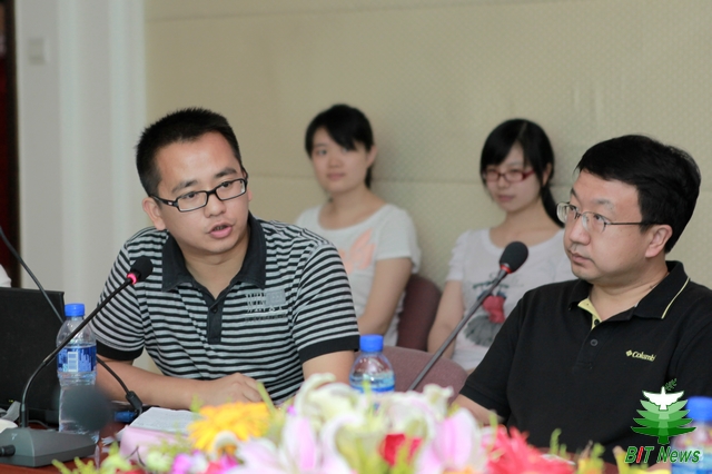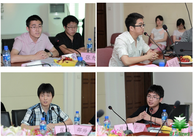创新基地培养出来的优秀学生代表介绍了自己参加科技创新活动的故事。创新基地党支部书记郭宏宸同学介绍了学生党建带动科技创新活动的工作情况;金镇晟同学以“从一名挂科生到一名矢志报国的总参优秀国发生”为题介绍了科技创新给了自己弥补过失、找回自信、成为一名保研的的优秀国防生的动人故事。崔皓同学以“小小锅炉房走出来的世界冠军”为题介绍了科技创新给平凡的自己不一般的锻炼,培养了自己不畏权威、勇攀科研高峰的精神,最终站到了世界的最高领奖台的传奇故事。邵帅、张长路、黄张涛以“科技服务国庆---用代码书写华丽阅兵方阵”为题介绍了他们参加国庆科研项目,通过自己的努力为国家和社会做出贡献的故事。