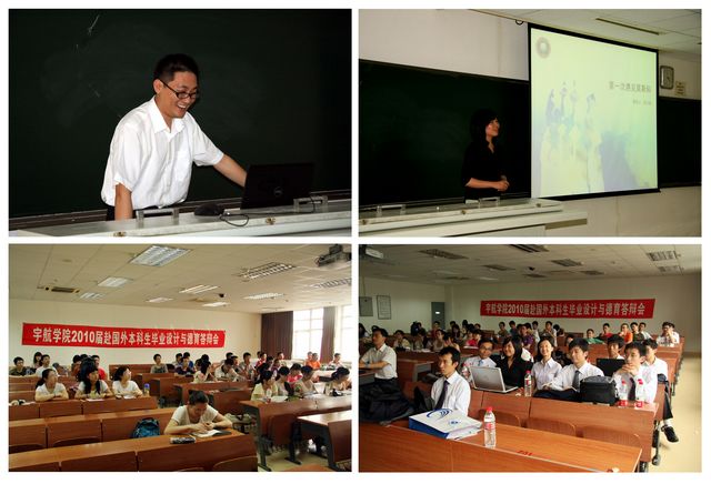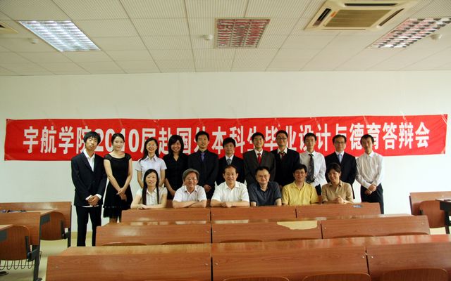 6月30日,宇航学院在中关村校区举行“2010届赴国外本科生毕业设计与德育答辩会”。教务处副处长徐瑾、学工处副处长徐建、宇航学院院长胡更开、副院长唐胜景、副书记副院长赵坤、学工处关宏及2007级部分本科生参加了此次答辩会。