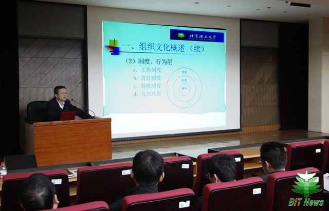 赵平对于组织文化建设有着独到的见解,从组织文化到大学校园文化再到北理工校园文化,逐步深入,层层剖析。特别是对组织文化精神理念核、制度行为层和物质形象面的分析引发了学员的兴趣和思考,课堂上学员与教师进行了互动,课堂气氛活跃,学员受益匪浅。