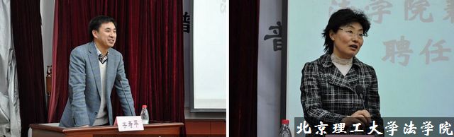 聘任仪式由李寿平副院长主持(左),张艳丽副院长对孙佑海教授做了介绍(右)