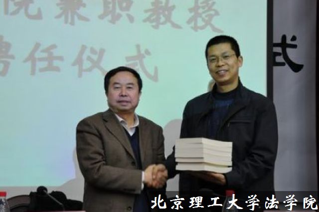 3月24日,为实现职业型法律人才的培养目标,注重对校外兼职教授的聘任工作,实行校内和校外的双导师制,北理工法学院聘任最高院研究室副主任孙佑海担任兼职教授并举行了聘任仪式。出席仪式的嘉宾有:校党委副书记、副校长李和章,法学院分党委书记徐强,副院长李寿平,副院长张艳丽。