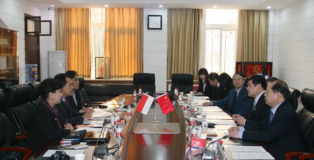 双方相关部门还在赵长禄副校长的主持下就本科生2+2项目、远程汉语教学、联合召开国际会议、发表论文等展开讨论。印方建议的本科生2+2项目为Mercu Buana大学学生在印尼学习2年,然后在我校继续学习2年,最后获得双学位。这对我校来说是一种探索教育输出合作的新模式。