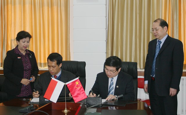 随后,胡校长与Nugroho校长共同签署了两校合作备忘录。