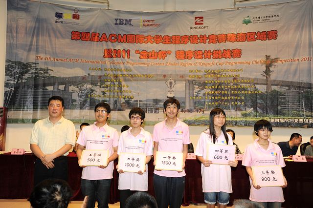 4月17日,第四届ACM大学生程序设计竞赛珠海区域赛暨2011“金山杯”程序设计挑战赛在我校珠海学院举行。ACM(Association for Computing Machinery )美国计算机协会是一个世界性的计算机从业员专业组织,创立于1947年,是世界上第一个科学性及教育性计算机学会。ACM每年都出版大量计算机科学的专门期刊,并就每项专业设有兴趣小组。