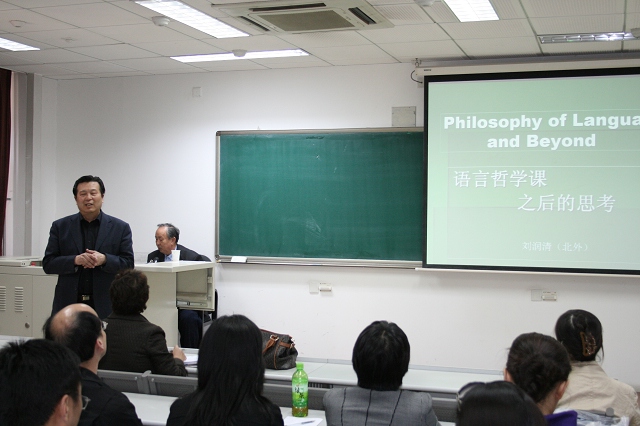 刘润清教授长期致力于语言学及应用语言学研究,并取得了众多的颇有影响的研究成果,本次学术报告的题目为“语言哲学、语言学及应用语言学”。在报告中刘教授用生动的语言阐述了哲学、语言哲学及语言学的关系;以丰富的内容系统地向大家介绍了语言学及应用语言学各流派的现状和发展;着重强调了外语教学的研究方向与正确的方法。整个报告内容非常充实,语言十分生动,尽显语言大家的风范,与会的老师和学生受益匪浅。