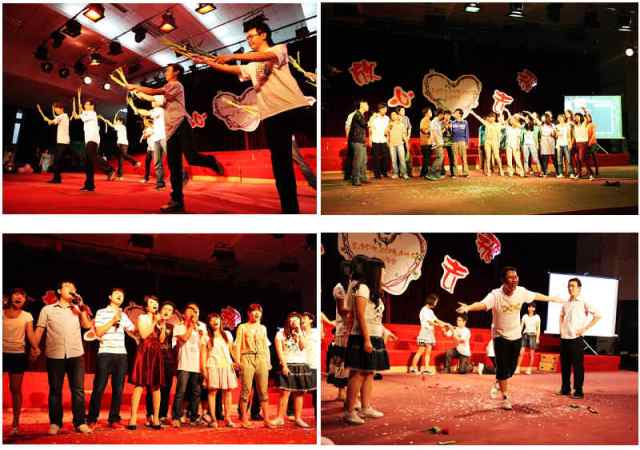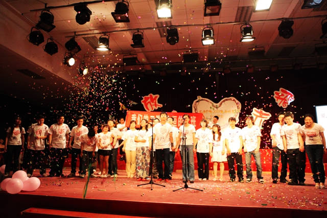 接下来,由毕业生们精心准备的各种精彩节目接连上演。合唱《爱因为在心中》,《当》等唱出了毕业的离情,唱出了友谊长存的祝愿;深情与感动并存的《好男孩》让场上热情如火,场上欢呼上不断;《那年、那日》、《新白雪公主和七个小矮人》、《我们的一天》等幽默风趣的短剧更是让同学们笑声不断,掌声不断;活泼放松的游戏,让在场的同学们暂时忘却了离别的愁绪,尽情的欢笑,尽情的狂欢。