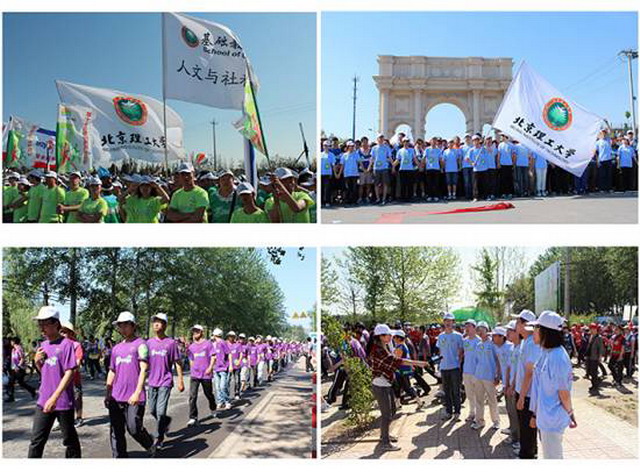 5月14日,基础教育学院应房山团区委邀请,组织500余名学生参与了在房山区长沟镇举办的2011年北京国际长走大会志愿服务工作。本届北京国际长走大会以“绿色北京、快乐房山”为主题,倡导绿色出行理念,使首都各界人士体验健康生活环境,感悟自然和谐之美,自觉践行绿色生活方式。此次活动路线全程16.5-21公里,起点和终点都设在中国房山世界地质公园博物馆,中央和北京市机关、企事业单位、驻华使领馆、大中学校,以及自由报名的社会各界近10000名人士分为红、绿、蓝、紫、黄五色方阵参加了活动。