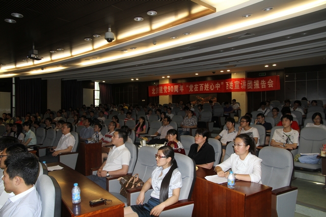 6月10日下午,北京市“党在百姓心中”高校巡回宣讲团二分团在我校研究生楼101报告厅为我校师生宣讲。宣讲活动是北京市委宣传部、北京市教工委为纪念建党90周年开展的系列活动之一,宣讲团是由市委宣传部从大学生村官、社区工作者中选取的部分优秀宣传员。我校学生党员、入党积极分子约150余人聆听了宣讲。