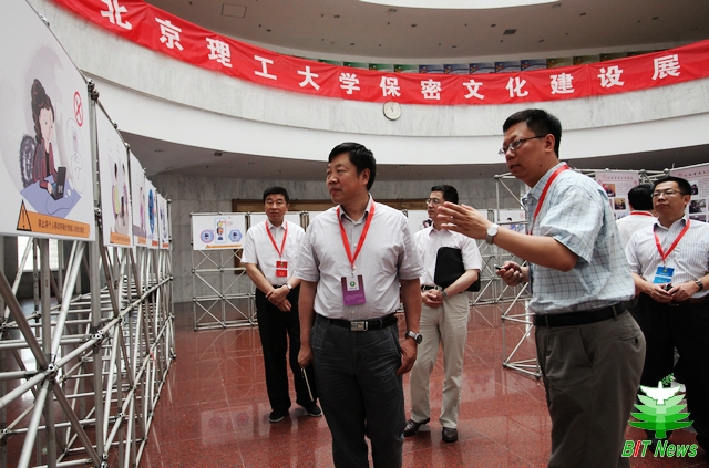 专家组成员参观了在中心教学楼布置的学校保密文化建设展