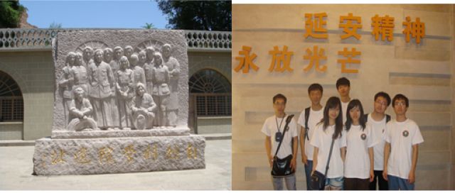 在实践的过程中,我们结识了来自南航的暑期社会实践服务团和中央民族大学的暑期实践团,对延安精神进行了热烈的讨论,也相互交流了关于暑期实践的经验和体会,彼此都觉得受益匪浅。在每一个革命旧址处,我们都可以看到来自祖国各地的红色旅游团,在建党九十周年之际,他们以这种缅怀过去的形式来庆祝党的生日。