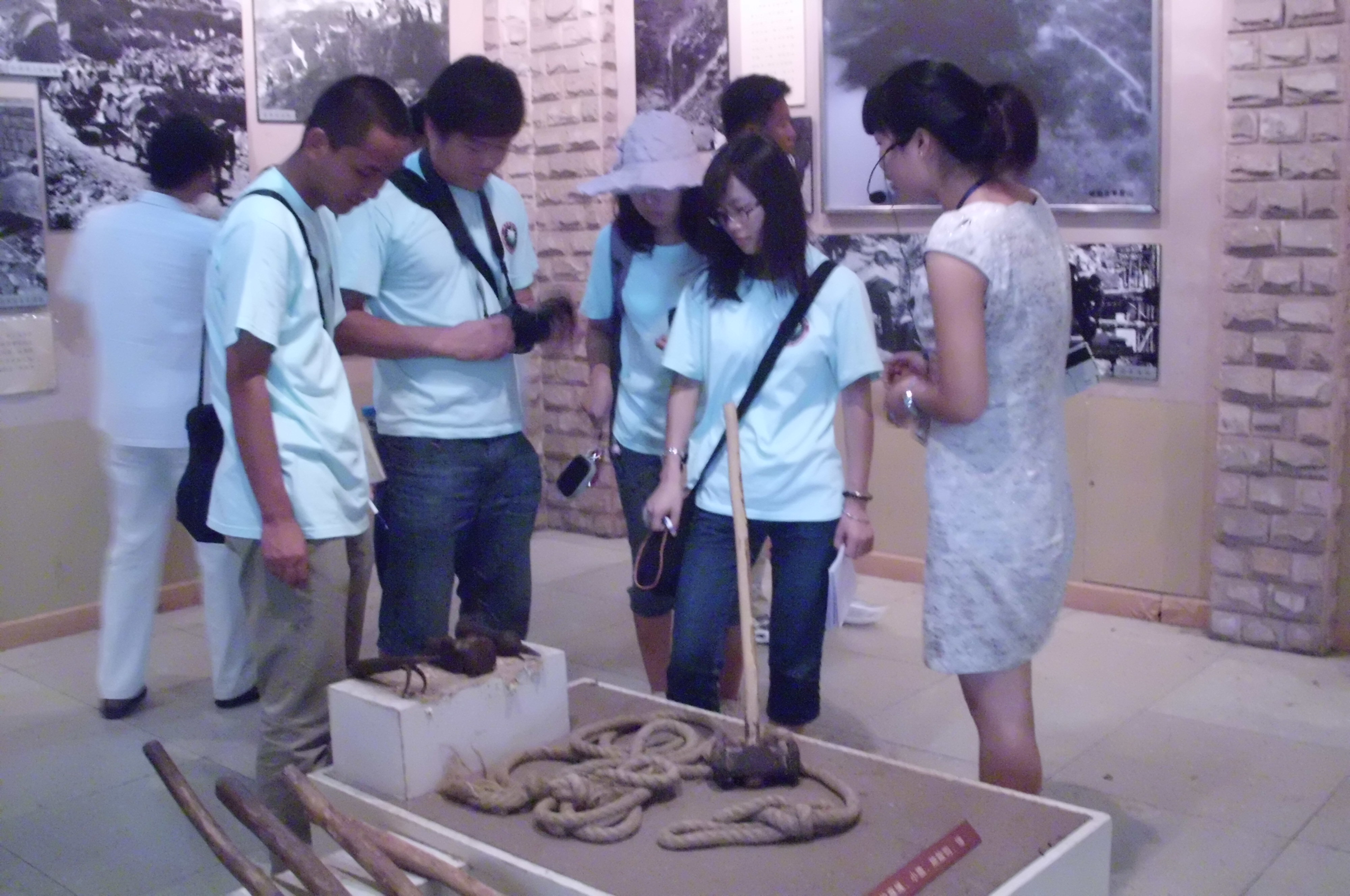 11日上午实践团来到距离林州市18公里的红旗渠分水苑参观,红旗渠总干渠在此地分为三条支渠。走进分水苑,看着墙上的壁画,触摸着制作火药的石碾,俯视石渠中奔腾的流水,让我们不禁感叹林县人民的智慧与勤劳。红旗渠纪念馆中,一张张珍贵的历史照片,一件件物品记录着林县人民不畏艰险、勇于向前的英雄事迹。通过观摩红旗渠的沙盘模型,我们更加清楚地了解了红旗渠的路线走向与灌溉幅面。看到林县现在的发展和领导人留下的字迹,我们不禁感叹林县人民的伟大。当天下午,实践团参观了青年洞。青年洞是红旗渠中最具代表性的一段隧道,是由300多民当地青年修建的,故命名为“青年洞”。江泽民同志在此留下了“学习艰苦奋斗、自力更生精神”的题词,鼓励着作为新时期大学生的我们要勇于担当,勤奋学习,敢于创新。