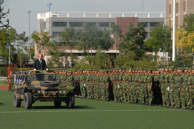9月9日下午,德赢AC米兰官网2011年军训阅兵典礼在良乡校区隆重举行。德赢AC米兰官网党委书记郭大成,中国工程院院士周立伟,副校长杨宾,副校长赵平,党委副书记、副校长李和章,房山区武装部副部长王庆文中校、66166部队副政委闫家文中校,66011部队营教导员温岩中校,及学校各部处、学院领导出席典礼。阅兵典礼上分别进行了阅兵式、分列式和军事科目表演。