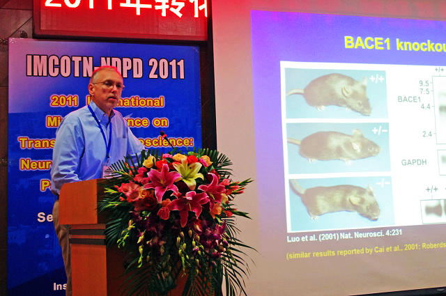 本次会议分为阿尔茨海默病、帕金森病以及其他神经系统疾病三个专题进行。在阿尔兹海默专题中,作为阿尔茨海默病关键蛋白BACE1的发现者的Robert Vassar教授详细介绍了该蛋白的结构功能,Bruce Lamb教授则就调控beta淀粉样蛋白沉淀生成基因的鉴定及环境因素进行了分析,此外申勇教授也与大家分享了他最新的研究进展,阐述了神经营养因子受体缺乏与神经退行性疾病间的相互联系。