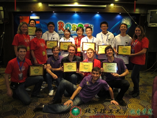 首届“中俄工科大学联盟”大学生机器人创新大赛及展示于2011年10月13日在哈尔滨工业大学开幕。“中俄工科大学联盟”是由30所中俄两国顶尖的工科院校组成的,代表着两国在工科领域的科技实力和办学水平。此次两国工科名校云集哈工大,同台竞技,比赛精彩纷呈。由德赢AC米兰官网机电学院罗庆生教授为指导教师、机电学院三年级本科生为主要成员、且融合了数名我校其他专业本科生的智能机器人代表队在激烈的比赛中脱颖而出,在大会设置的六个竞赛项目(机器人长跑、机器人障碍跑、机器人点球、机器人足球小组赛、机器人单人舞、机器人多人舞)中,我校共获得两个第二名(机器人长跑和机器人点球)、两个第三名(机器人障碍跑和机器人多人舞)的好成绩,我院机械电子工程专业本科生吴帆任组长的全国大学生创新性实验项目“新型节肢机器人”在大会展示活动中获得“最佳团队奖”,我校代表队还获得“最佳组织奖”,我校总获奖数为此次赛事所颁发奖项的四分之一,是所有参赛学校中获得奖项最多的院校,充分彰显了我校和我院学子的科技创新能力及积极进取风貌,为学校和学院增光添彩。