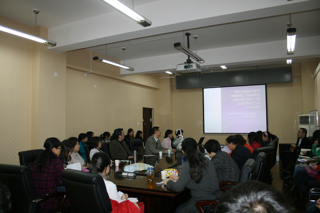 讲座的题目是“中国英语学习者的身份认同发展:基于跟踪研究的思考”。高教授首先介绍了英语学习者的社会心理以及学习者学习动机与自我身份认同变化的理论进展,在此基础上,提出了关于学习者自我认同的“生产性外语学习”概念,并对大学生的英语学习动机与自我认同建构做了多角度的系统研究。通过对本科学生英语学习动机与自我认同变化进行定量分析,以及并结合个案详细阐释,论证了英语学习与自我认同建构的过程及各种变量之间的相关性。高教授认为:对于我国大学生来说,除工具作用外,英语学习对大学生的自我认同产生了潜移默化的建构作用;对自我认同的多元动态建构会影响学习者的自信;“生产性外语学习”的双语体验将促进外语学习者向稳定的生产性双语人格发展,英语教学不应仅仅局限于语言技能,而且还要关注伴随英语学习而产生的学习者的自我认同变化。
