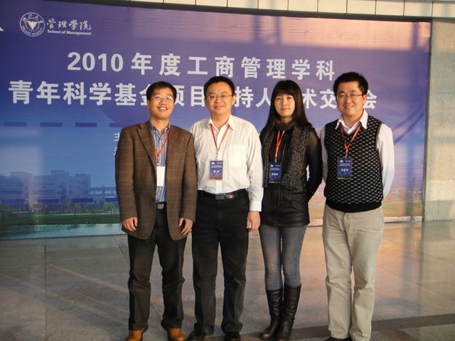 近日,管理与经济学院市场营销系马宝龙副教授、吴水龙博士以及公共管理系陈振娇博士参加了由国家自然科学基金委员会管理科学部在浙江大学举办的“2010年度工商管理学科青年科学基金项目主持人学术交流会”,汇报了他们分别主持的2010年度国家自然科学基金青年基金项目的进展情况,并与来自全国各地高校、科研机构的81位青年基金项目主持人分享研究心得与体会。