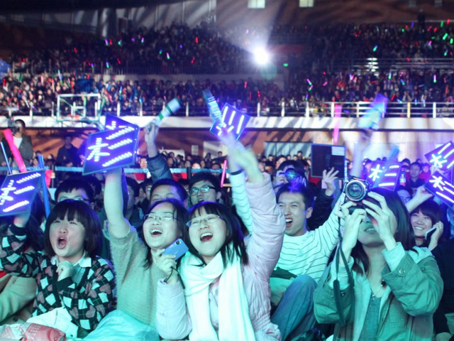 为同学们带来惊喜的还有B-BOX高手博子为大家带来的精彩演出,神秘嘉宾J-ONE组合的闪亮登场掀起了全场最高潮,热情的舞曲《火热》和《暗夜马戏团》让现场的热情欢呼声和挥舞的荧光棒瞬间汇成一片欢乐的海洋。
