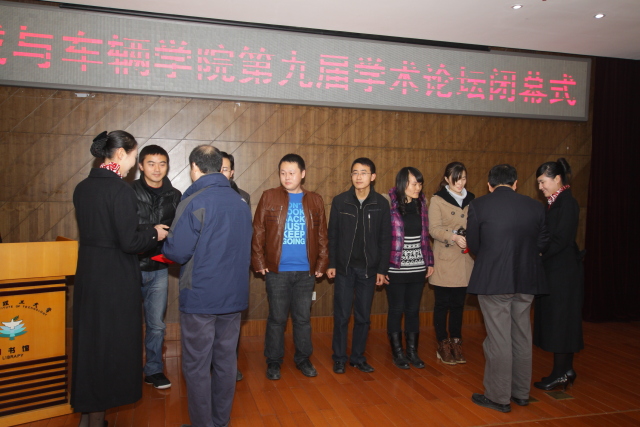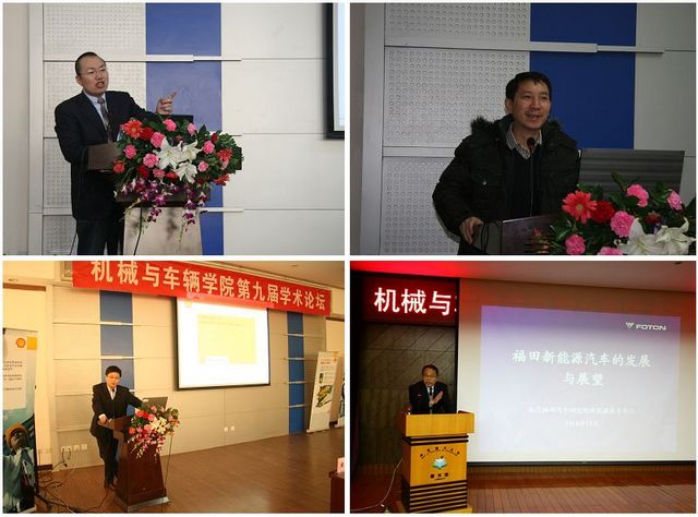 闭幕式后,张春淮(上图右下)结合新能源汽车技术的发展趋势做了学术讲座。除开、闭幕式讲座之外,本届研究生学术论坛期间还举办了一系列学科前沿学术讲座,有LMS公司技术总监石银明博士(上图右上)的“机电液控一体化系统仿真技术最新发展趋势及应用”、长安汽车工程研究总院副院长吴礼军先生(上图左上)的“如何创造知识价值”、壳牌润滑油全球设备认证经理宣小平博士(上图左下)的“润滑之道”范围之广、内容之深,都使同学们受益匪浅。