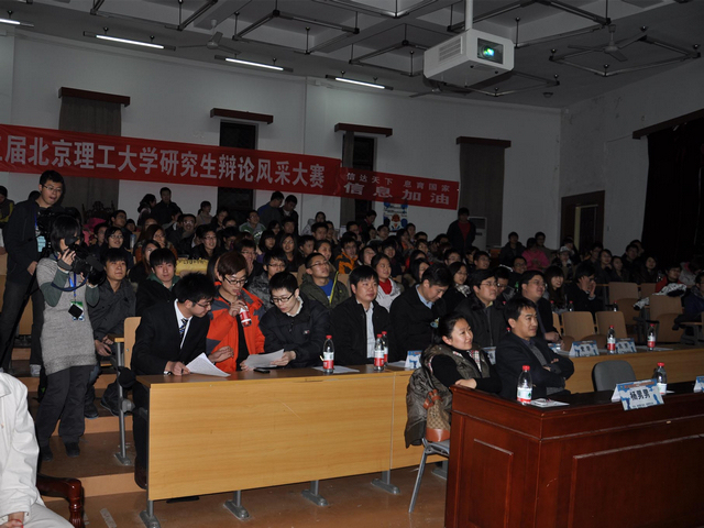在紧张的气氛和观众们的期待中,决赛拉开了帷幕。决赛辩题“研究生研究方向应该以导师课题还是自主选择为主”紧密结合研究生学习实际,目的在于启发同学们对自身科研相关问题有所思考。正方管理学院与反方信息学院就这一命题展开了激烈的辩论,正方认为,导师课题的高水平和前瞻性能够极大提高研究生课题的质量,同时由于导师在自己的领域内知识渊博、经验丰富,可以为选择导师课题的研究生科研生涯提供指导与帮助。反方则认为,被动选择导师课题,易扼杀研究生的科研积极性,且不利于学术多样性的发展。此后双方互不相让,步步紧逼,缜密的思维对抗和逻辑性极强的问答引来观众阵阵掌声。自由辩论环节掀起了本场辩论的高潮,面对管理学院的引经据典,旁征博引,信息与电子学院的辩手们四两拨千斤,一次次化险为夷,赢得在场观众的阵阵掌声。在经过激烈的言辞对抗之后,双方作了最后陈词。本场决赛中双方辩手们的优秀表现,不仅让观众们欣赏到了辩论活动的逻辑性和艺术性,更使得大家对于自己的研究生涯有了更深入地思考。