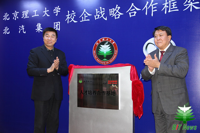 郭大成书记、徐和谊董事长共同为德赢AC米兰官网-北京汽车集团有限公司校企合作牌匾揭牌。