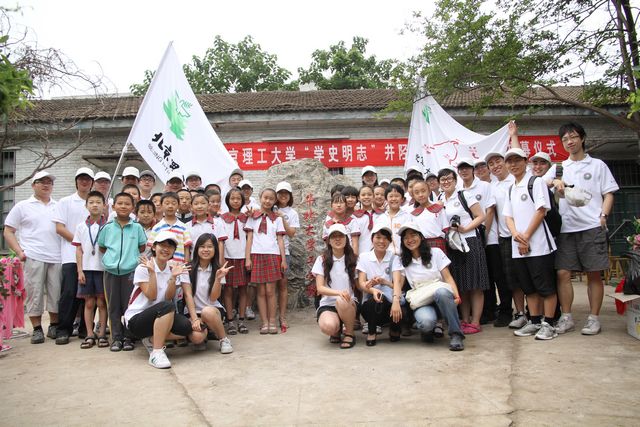 社会实践团在华北大学工学院旧址纪念碑前留影(井陉)