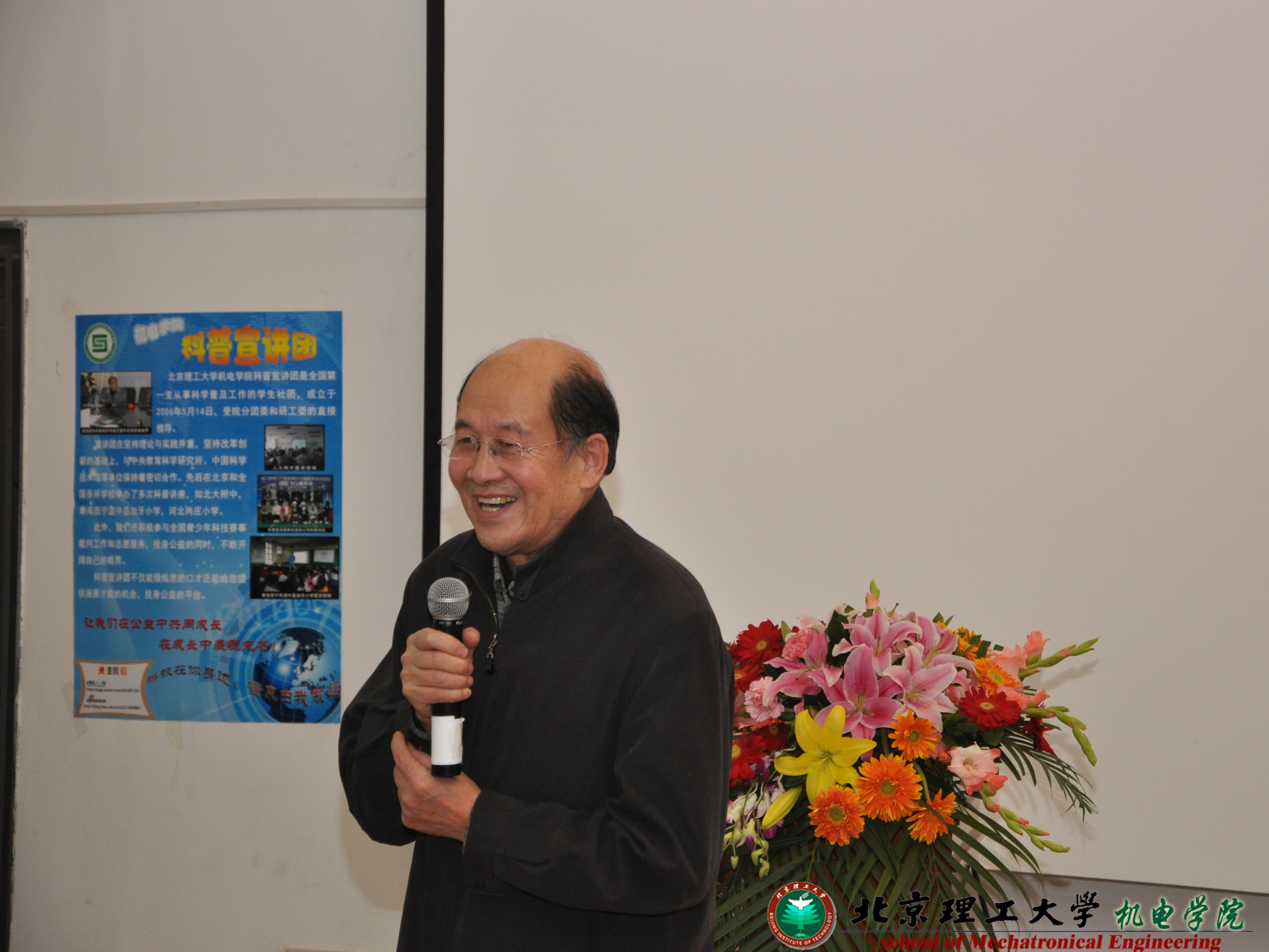 李和章副校长也对此次比赛予以了极大的肯定,倡导同学们在以后的科研学习生活中荡起“科学”和“民主”的双桨,充分发挥我北理工在理工科方面的优势,兼顾人文科学的发展,并期待以后的机电学科普宣讲团不仅仅能够巩固学院自身品牌社团的地位,更是希望能够成为北理工学子发挥专业特长,学以致用,投身我国公益科普事业的品牌社团。
