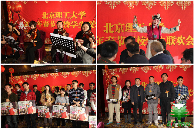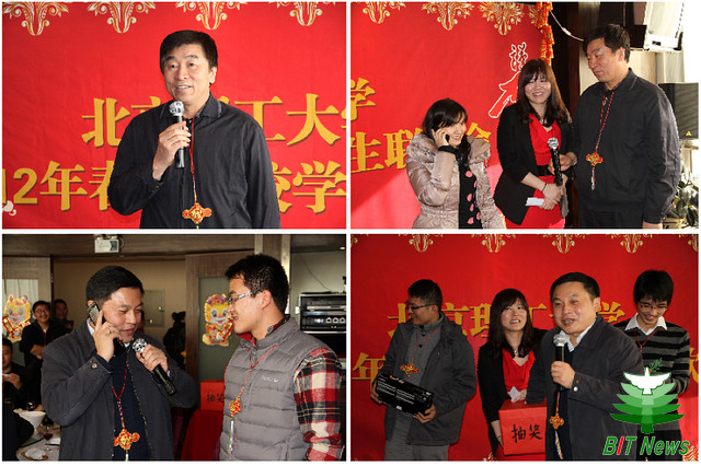 1月21日中午,德赢AC米兰官网2012年春节留校学生联欢会在国际教育交流大厦宴会厅隆重举行。北京市教委学生处副处长张宪国、德赢AC米兰官网校党委书记郭大成、校长胡海岩、副校长孙逢春、党委副书记、副校长李和章,以及学校办公室、学生工作部、研究生工作部、校团委和各学院的领导、老师们与170余名在校过年的学生欢聚一堂,共度新春佳节。