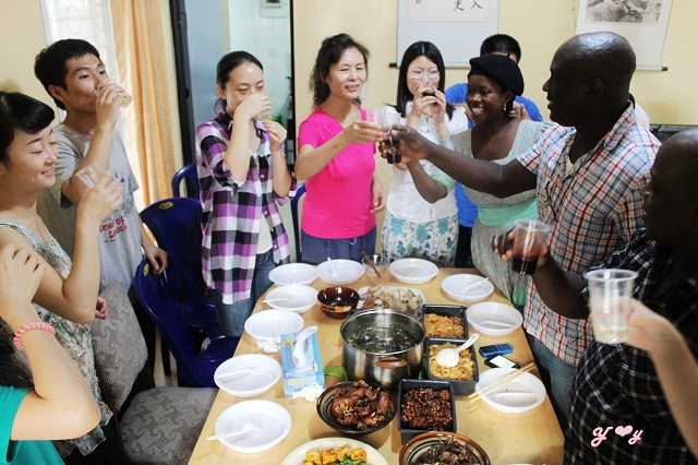 2月6号,正值中国传统节日元宵佳节,拉各斯大学孔子学院的院长和志愿者们与外方院长及老师共度此节日。虽然远在离祖国万里之外的尼日利亚,这里节日的气氛丝毫不减。志愿者们不仅张灯结彩将屋子布置一新,还亲自动手做了一桌丰盛的菜肴,做了地地道道的元宵。外方院长和老师对中国菜赞不绝口,和中国人一起用了筷子吃饭。中方院长姜丽蓉给外方客人介绍了中国元宵佳节的传统和元宵的美好寓意,祝福大家在新的一年里工作生活圆圆满满。外方客人对中国传统节日表现出了浓厚的兴趣,和志愿者老师们一起表达了对祖国亲人朋友的祝福。