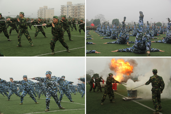 接下来进行的科目表演更是壮观精彩,内容包括匕首操、短棍术、匍匐拳、警棍盾牌术、女子防身术、刺杀操、消防演练、航模表演和手语表演,学员们准确到位的一招一式、坚定有力的一拳一脚让在场观众惊叹不已,现场掌声不断。