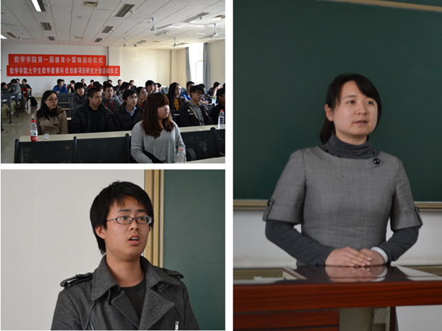 3月27日下午3:00,数学学院第一届德育小雷锋启动仪式在良乡校区理科教学楼205教室拉开序幕。数学学院党委副书记、副院长衡靖、数学学院副教授李炳照、基础教育学院理学与材料学部副主任胡雪娜、数学学院分团委书记高冰出席了此次启动仪式。数学学院2008、2009级的学长作为第一批德育小雷锋与2010、2011级的同学们交流了大学期间在学习、工作等各方面的体会与经验。2010级理材学部辅导员孙红权主持了这次启动仪式。