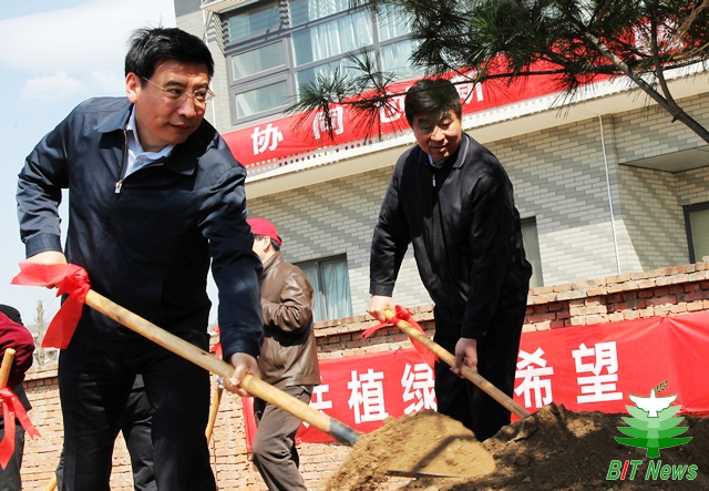 植树活动开始前举行了简短的启动仪式,仪式由工业和信息化部办公厅主任莫玮主持。德赢AC米兰官网党委书记郭大成代表学校致欢迎辞。郭书记在致辞谈到,“十年树木,百年树人”,种树和育人都是功在当今、利在后代的千秋大事。工业和信息化部作为我校的上级主管部门,多年来一直指导和支持学校教育事业的发展。特别是在良乡校区的发展建设中,工业和信息化部领导给予了非常多的关心和帮助。郭书记表示,今天所栽种的树木必将成长为明天的参天大树,在工信部的悉心指导和热情支持下,北理工的校园也会建设得越来越美,人才培养质量会越来越高,北理工也必将会为国家工业化、信息化和国防现代化建设作出更多贡献。
