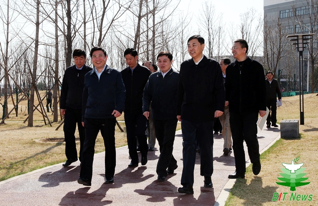 苗圩部长一行饶有兴致的参观了良乡校区的最新建设情况,并与部分良乡校区师生亲切交谈。